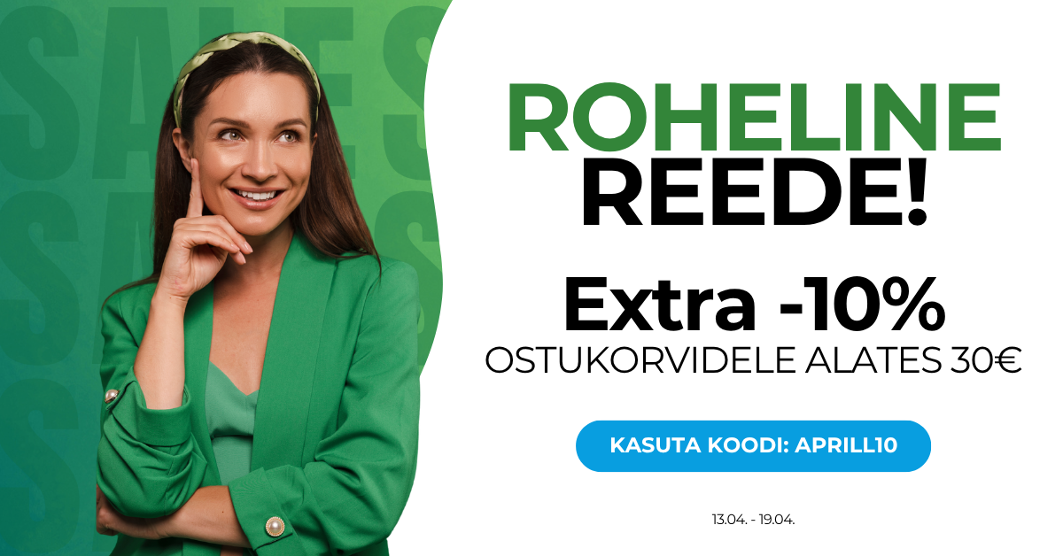 APRILL10 sooduskood kehtib kuni 19.04.2026. Soodustuse saamiseks peab ostukorvis olema vähemalt 30 € eest tooteid. Ühes ostukorvis saab kasutada üht sooduskoodi.