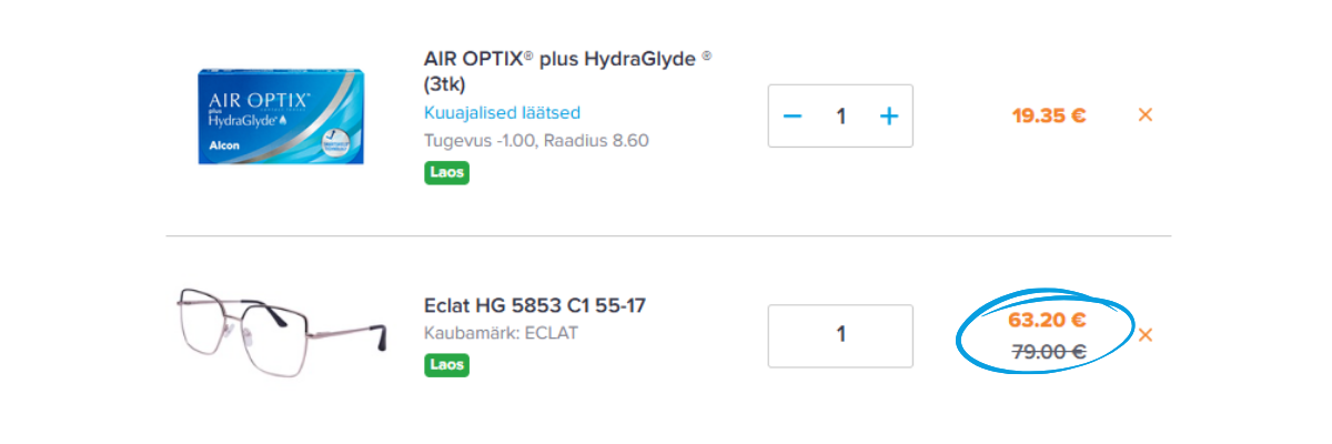 - Lisa ostukorvi kontaktläätsed