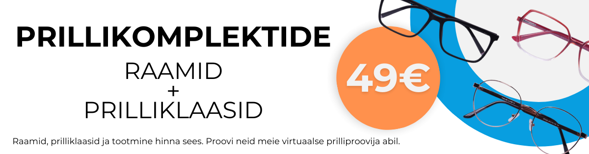 Pakkumine kehtib retseptiprillidele. Prilliklaasid saad lisada pärast prilliraamide valikut. Rohkem infot e-poest prillide tellimise kohta →